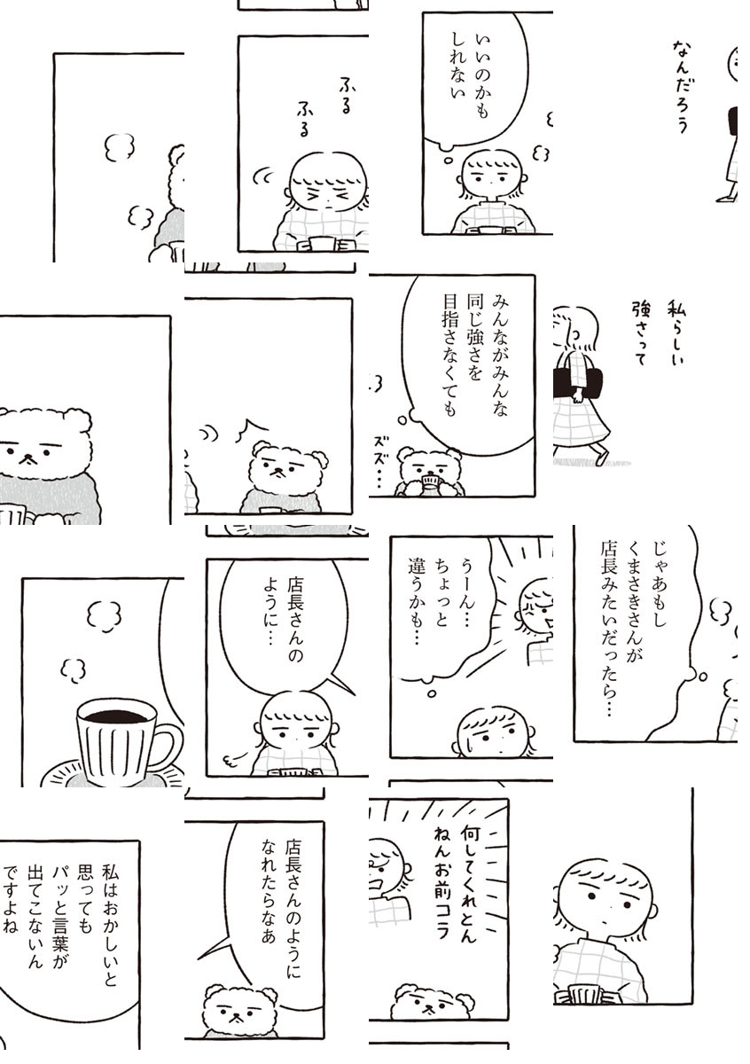 (毎週金曜日更新!)たこ焼きと掃除を愛するくまさきさんは、毎朝せっせとうらら町の落ち葉はき。コワモテの喫茶店マスター、くせ毛の女の子、忘れっぽいマンガ家、地図の読めない不動産屋さん……くまさきさんと町の人々がくりひろげる、和みのショートコミック!