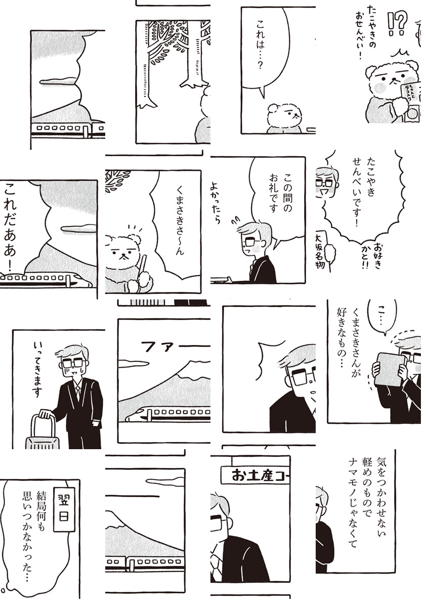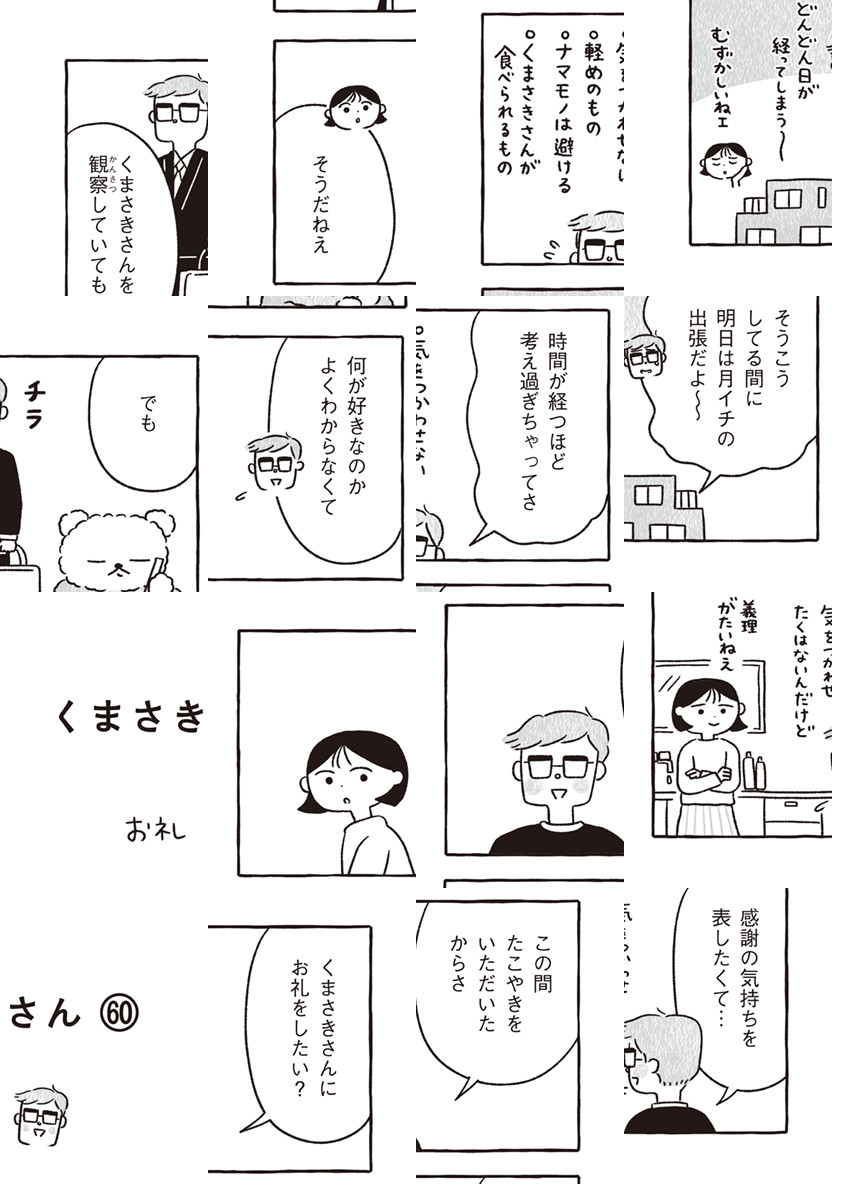 (毎週金曜日更新!)たこ焼きと掃除を愛するくまさきさんは、毎朝せっせとうらら町の落ち葉はき。コワモテの喫茶店マスター、くせ毛の女の子、忘れっぽいマンガ家、地図の読めない不動産屋さん……くまさきさんと町の人々がくりひろげる、和みのショートコミック!