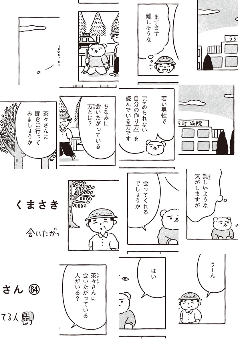 (毎週月・金曜日更新)たこ焼きと掃除を愛するくまさきさんは、毎朝せっせとうらら町の落ち葉はき。コワモテの喫茶店マスター、くせ毛の女の子、忘れっぽいマンガ家、地図の読めない不動産屋さん……くまさきさんと町の人々がくりひろげる、和みのショートコミック!