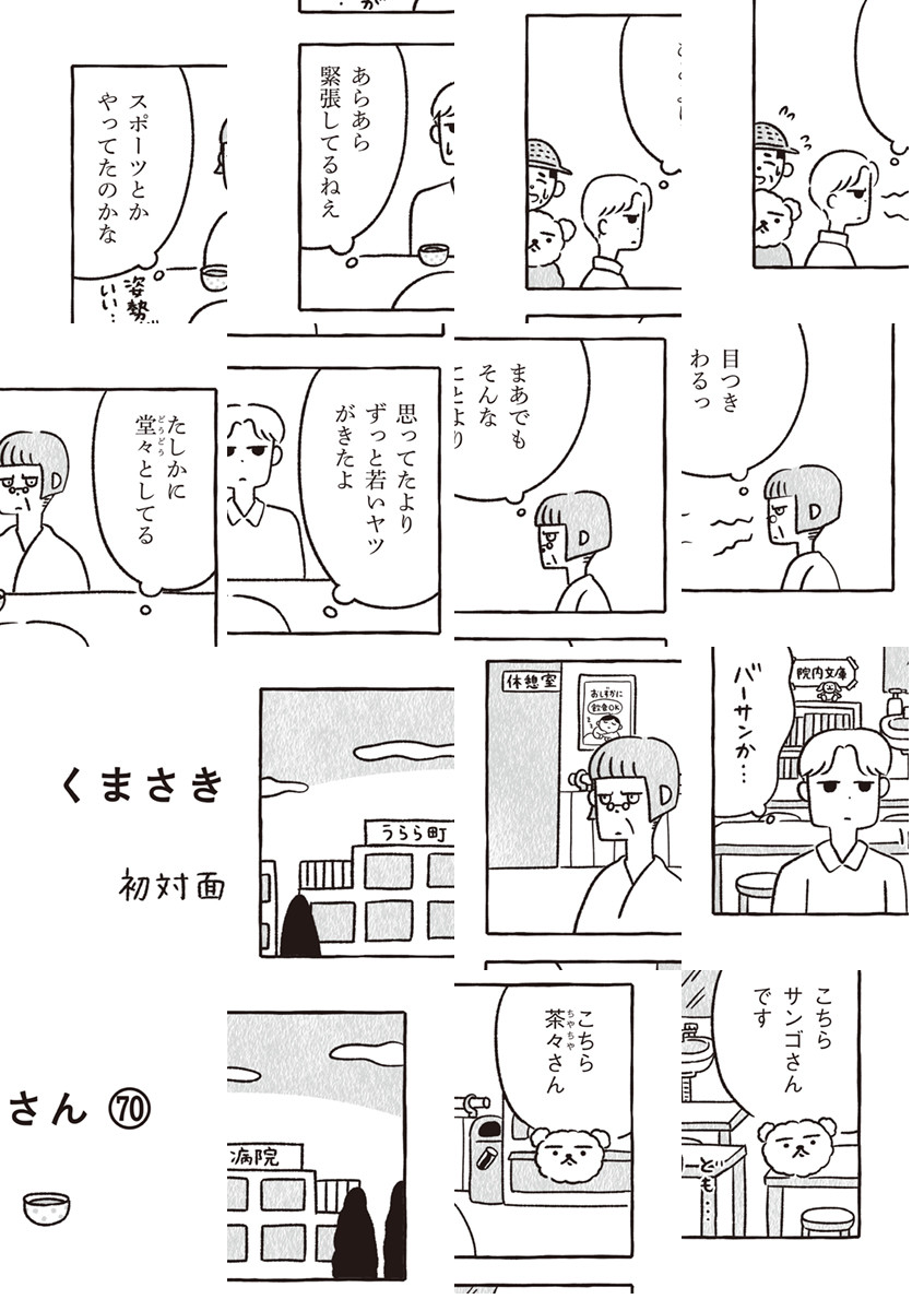 (毎週月・金曜日更新)たこ焼きと掃除を愛するくまさきさんは、毎朝せっせとうらら町の落ち葉はき。コワモテの喫茶店マスター、くせ毛の女の子、忘れっぽいマンガ家、地図の読めない不動産屋さん……くまさきさんと町の人々がくりひろげる、和みのショートコミック!