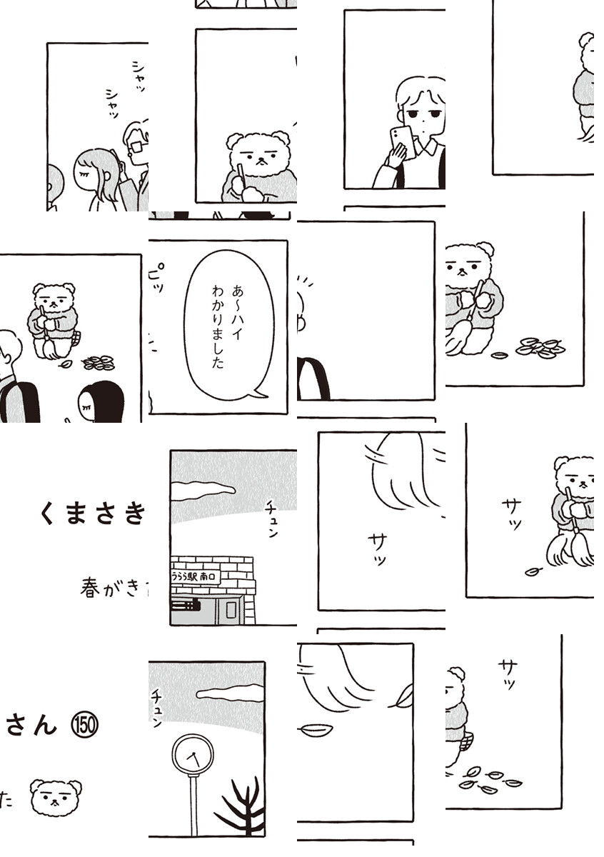 (毎週金曜日更新!)たこ焼きと掃除を愛するくまさきさんは、毎朝せっせとうらら町の落ち葉はき。コワモテの喫茶店マスター、くせ毛の女の子、忘れっぽいマンガ家、地図の読めない不動産屋さん……くまさきさんと町の人々がくりひろげる、和みのショートコミック!